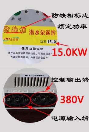 浇地潜水泵遥控器【15.0KW】在接线时,将主机的输入端输出端分别接电源380V、水泵电机即可。
