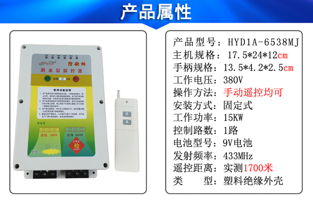 三相潜水泵遥控器【15.0KW】是一种远程控制15.0KW以下(含15KW)的三相水泵、潜水泵、电机等设备的遥控装置,遥控实测距离可达1700米,无障碍实测距离2500米,理论距离3000米。