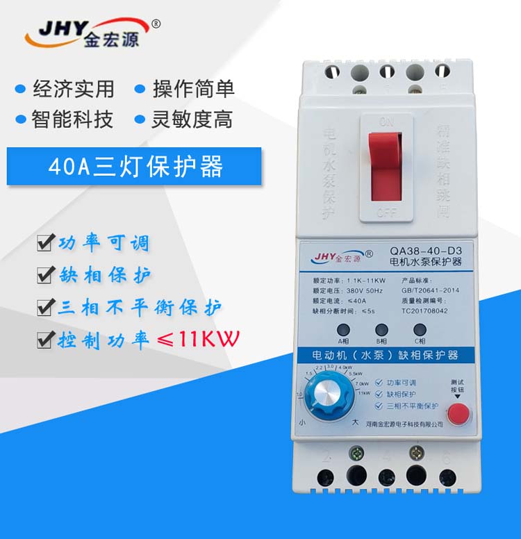 金宏源电动机断路器在潜水泵出现断相、缺相情况下3秒内自动切断电源,避免了潜水泵因缺相、断相而烧毁的现象的发生。其大额定电流为40A,额定电流小于40A的水泵、潜水泵、电机均可使用此款水泵保护器进行保护。此款电动机断路器大的优势就是:可以自由调正额定功率大小,而且具有三个指示灯,随时监控水泵运行状态。